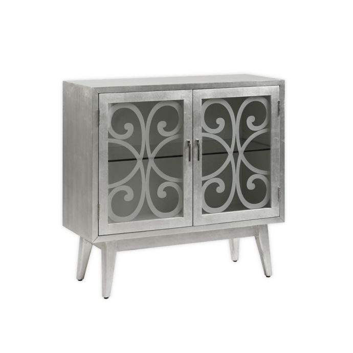 2 Door Accent Cabinet Gray. Two tempered glass doors and an adjustable shelf. Add one to your bedroom as a side table or your entryway as a spot to stash odds and the anderson cabinet is as beautiful as it is functional.