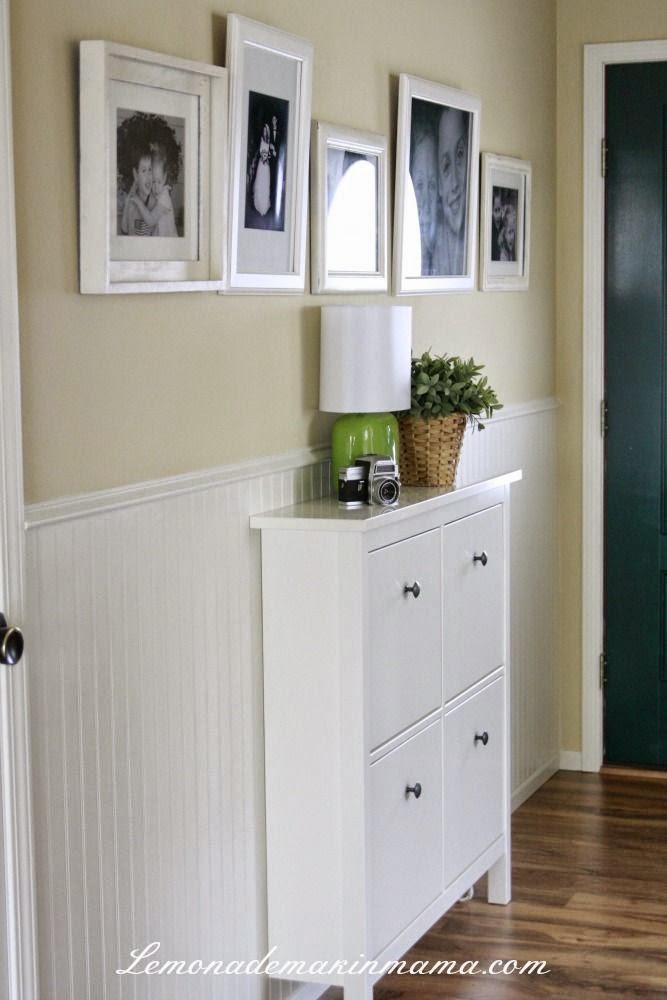 Hemnes Shoe Cabinet Entryway. You can see the trim outlining the old closet. Hemnes shoe cabinets are simple and plain storage pieces, sleek and simple ones, ideal for a small space.