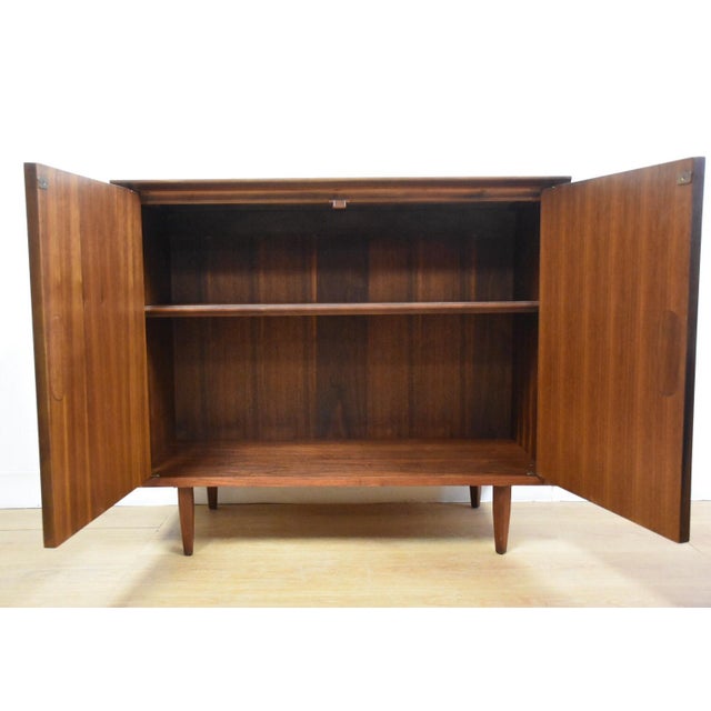 Mid Century Modern Bar Cabinet White. It includes functional elements and cabinets finished in neutral white color. Dining room & bar furniture/.