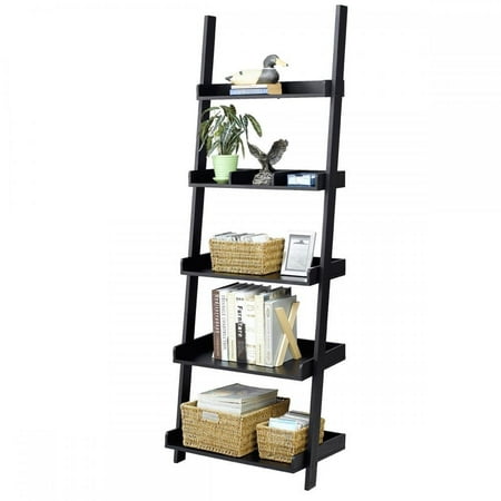 Leaning shelf bookcase with computer desk office furniture.