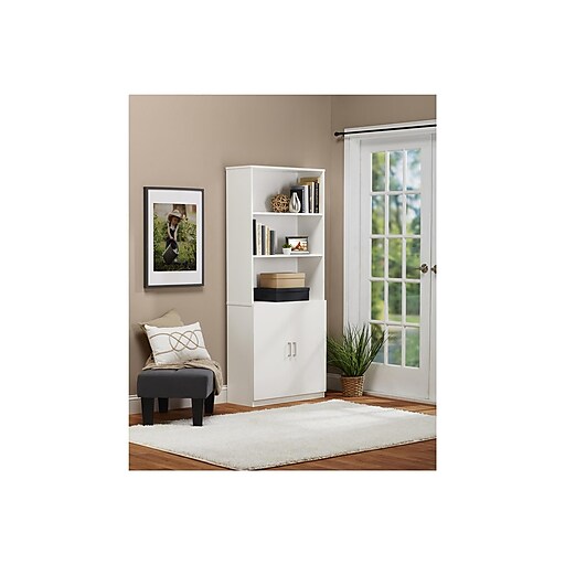 Staples White Bookcase. Browse white file cabinets on sale, by desired features, or by customer ratings. This white bookcase with glass doors by altra comes in a creamy white color and a dazzling glass picking up a bookcase to entice the guests is the staple for avid book readers.